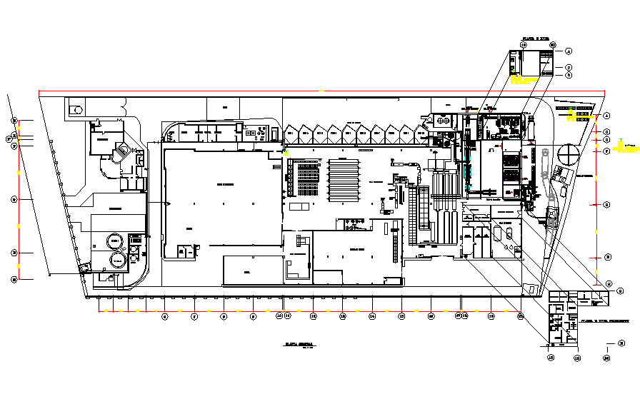 Fish industry plan detail dwg file, with centre lien plan detail, dimension detail, naming detail, etc.