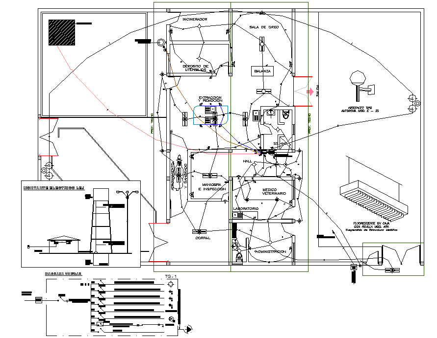 Electrical municipality halter plan detail dwg file, with furniture detail in door and window detail, section line detail, etc.
