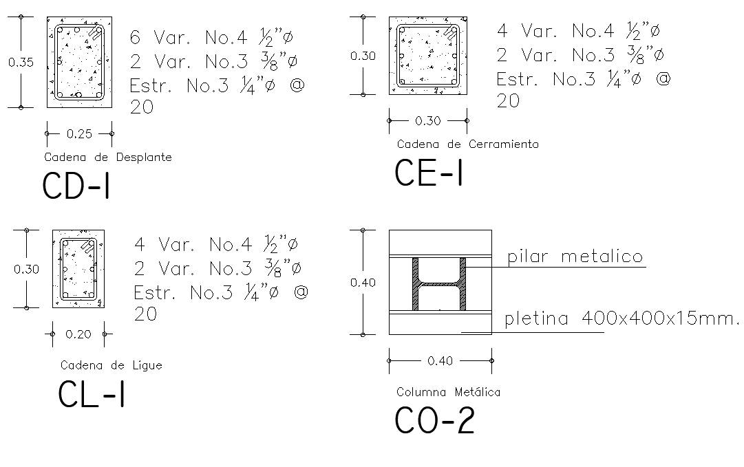 Column section detail dwg file, with dimension detail, naming detail, etc.