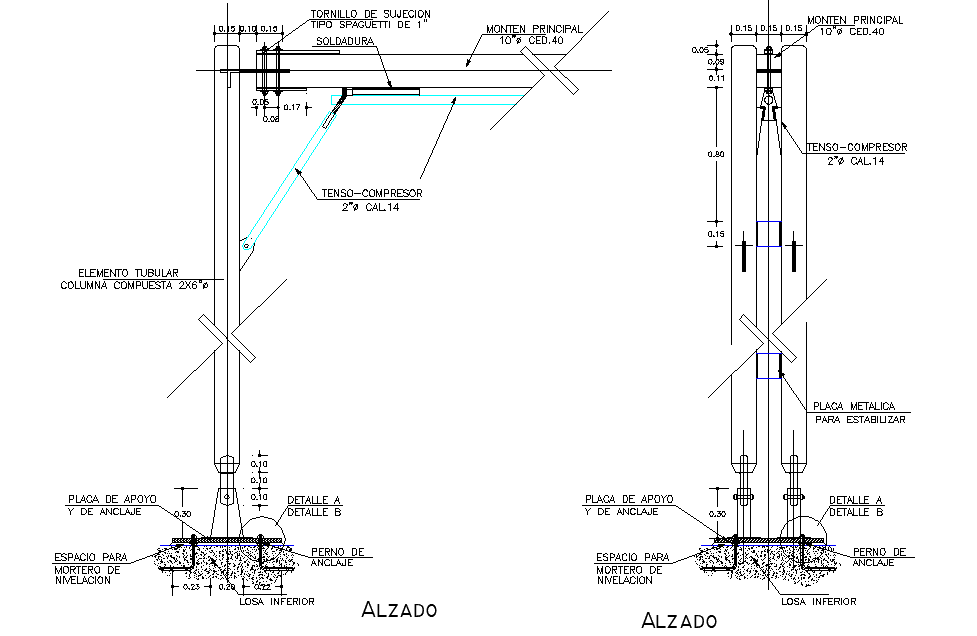 Street light detail dwg file, with plan and section detail, dimension detail, dimension detail, etc.