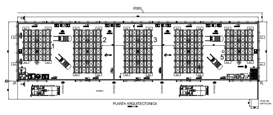 Industrial Architecture In DWG File including car parking section line detail, naming detail.