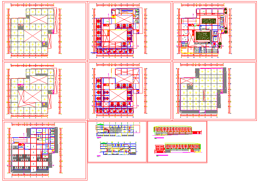 This AutoCAD DWG provides a complete 5 Star Hotel detail plan, showcasing multiple floor layouts with conference rooms, luxury bedrooms, executive suites, meeting rooms, and housekeeping service zones. The drawing includes detailed arrangements of corridors, lift lobbies, core areas, banquet circulation, and hospitality service components. The plans highlight structured grid lines, room distributions, furniture layouts, and internal zoning that define guest areas and staff access routes. Each floor level displays a unique configuration of guest rooms, support spaces, terraces, and landscaped pockets, providing designers with accurate architectural references for hotel planning.