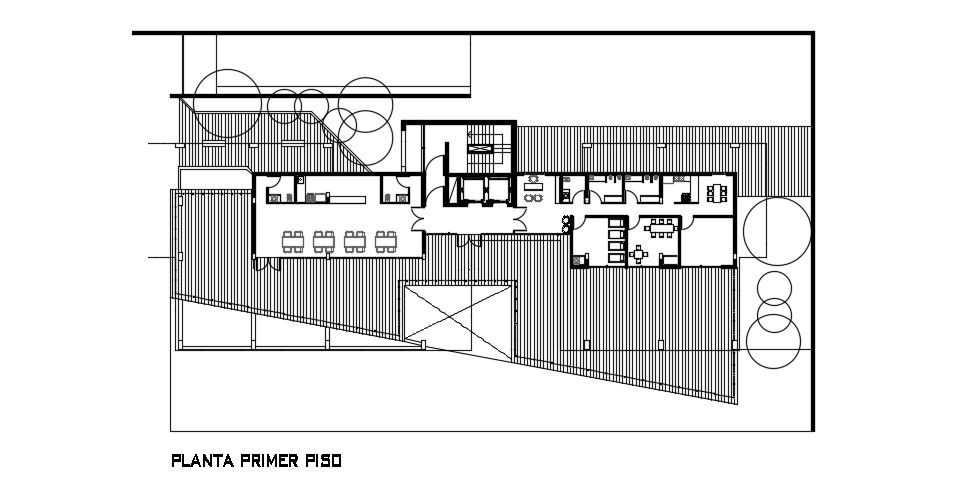 First Floor Plan In DWG File which includes office, waiting room, sitting section, rooms, washrooms, workstation.