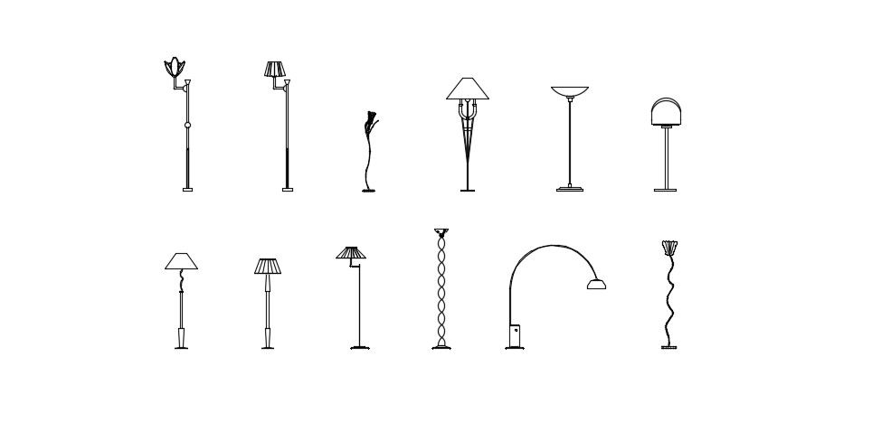 Download Free Lamp CAD Block In DWG File which shows different types of lamps with different types of patterns and designs.