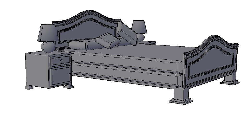 3d Bedroom Furniture In AutoCAD File which shows 3d drawing of bedroom furniture which includes a bed, nightstand, lamp.