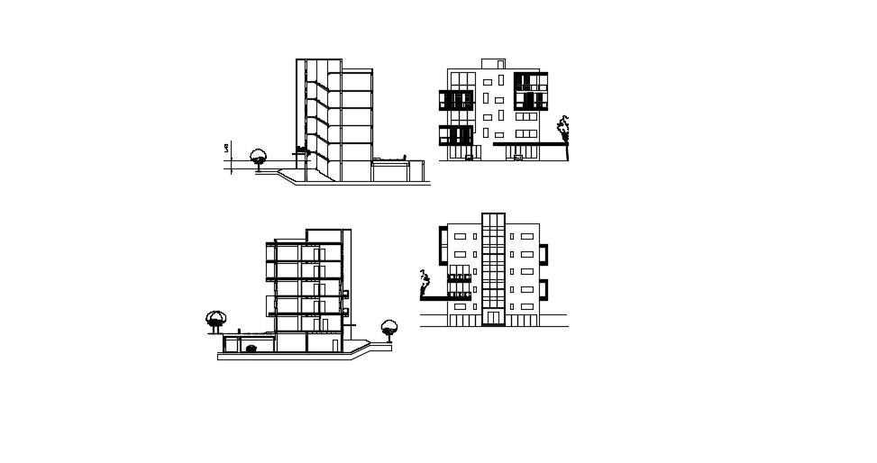 Commercial Complex Elevation In AutoCAD File which includes different elevations, a different section of the building.