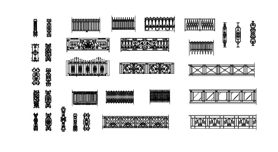 Railing Design In DWG File which includes different types of railings, grill designs for balconies, stairs.