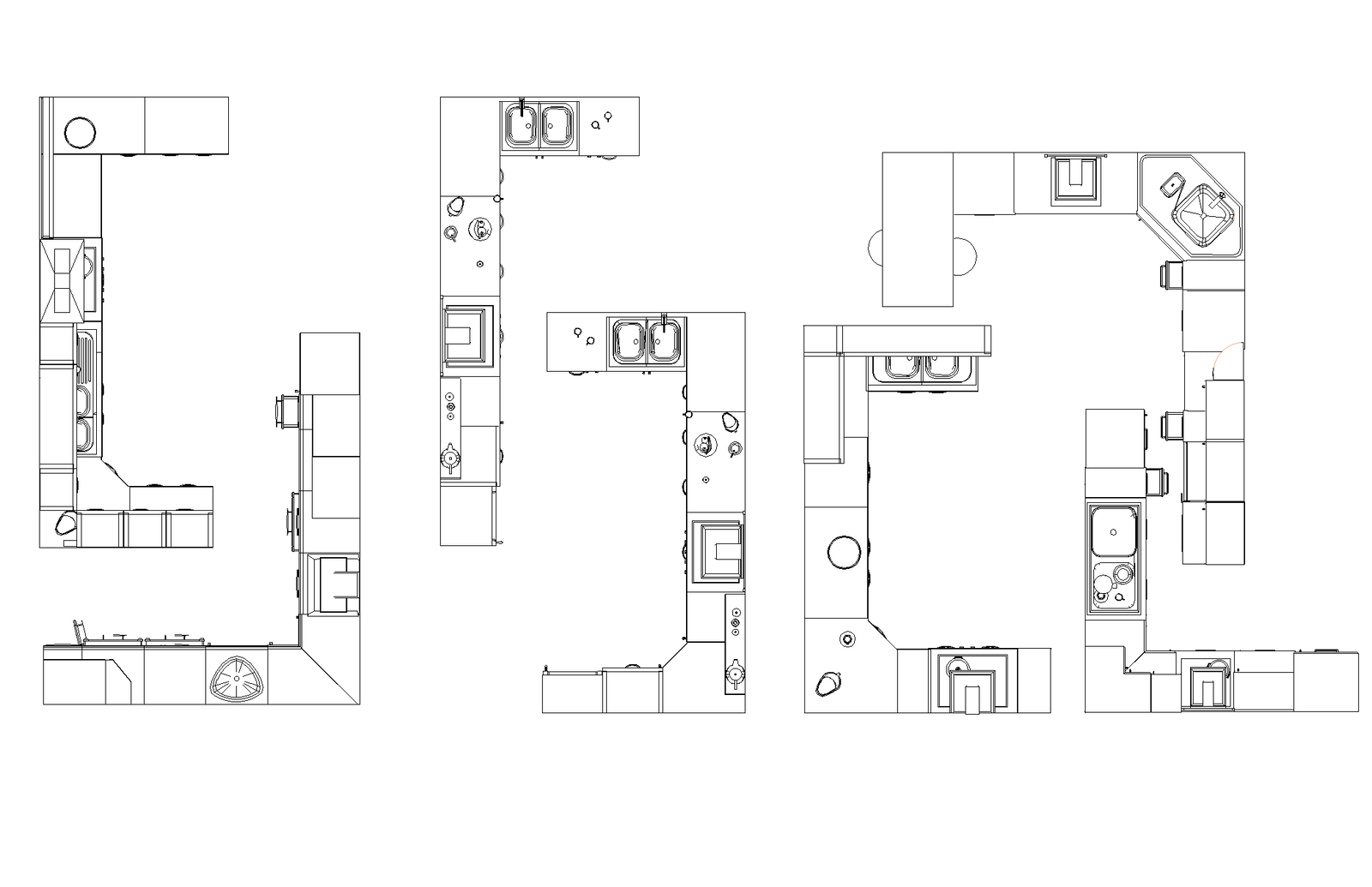 Cabinets Design In DWG File which includes different cabinet designs, drawers, washbasins, stove place.