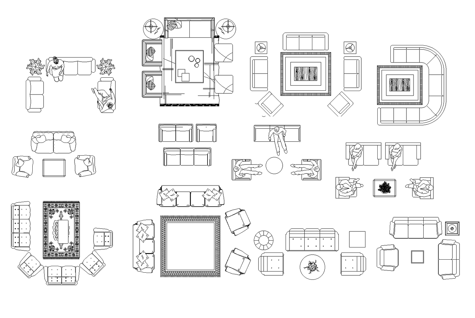 CAD Blocks Furniture File, Including Sofa Set and Tables