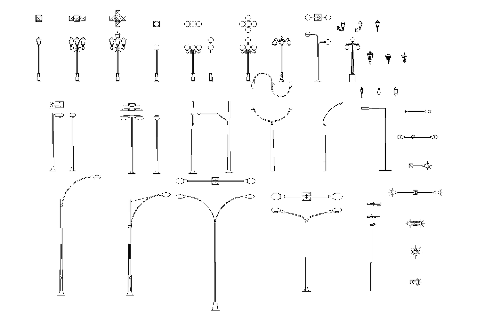 Street Light CAD Block In DWG File which shows different types of street lights.