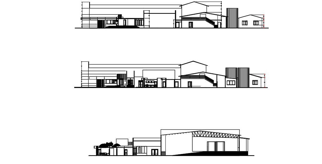 Factory Elevation In DWG File which shows different elevations of the factory. It also shows different sections of the building.