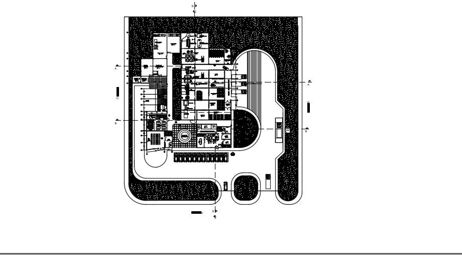 Industrial Floor Plan In DWG File which shows general area, warehouse, administration, production area, laboratory, tank.