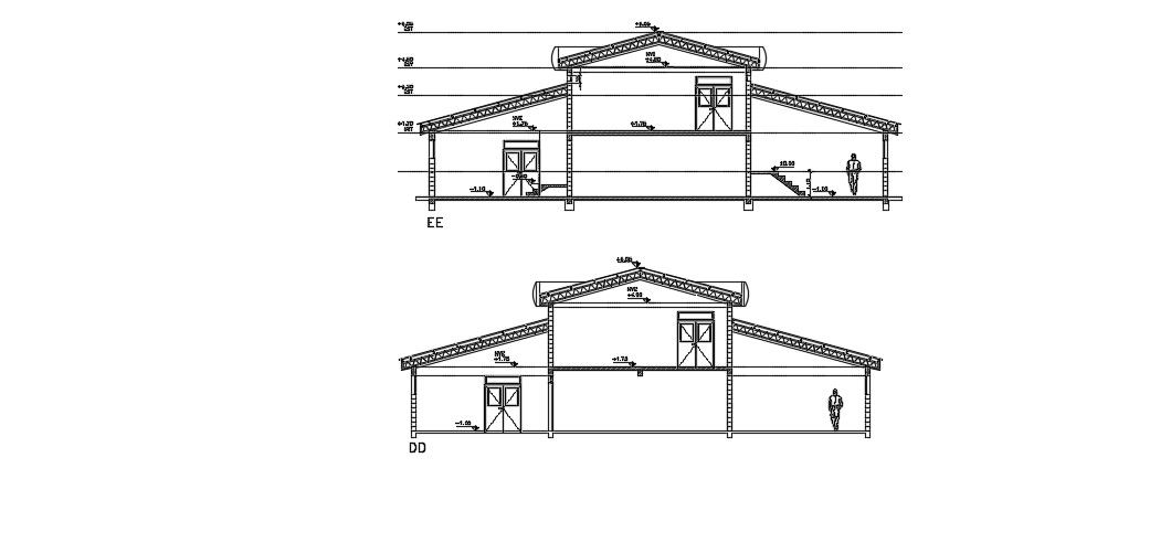 Download Free House Section Drawing In AutoCAD File which shows elevation and sections of the house with dimension.