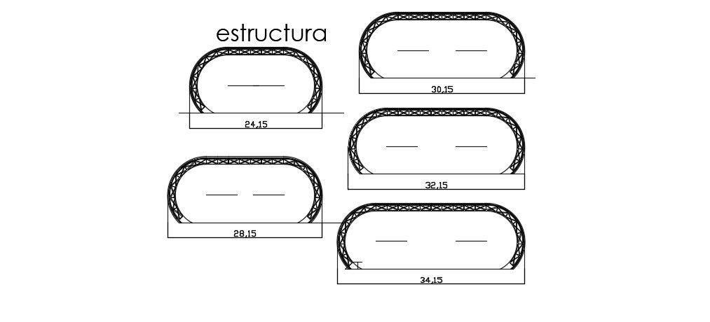 Frame Structure In DWG File which shows different types of frames with different dimensions.