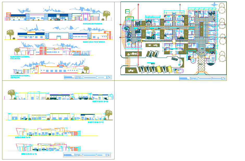 Hospital Design Plan with Elevations and Detailed Floor Layout DWG