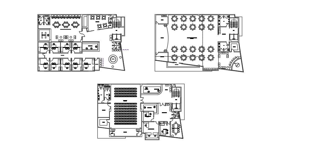 Medical College Plan In DWG File which shows the third, fourth and fifth-floor plan of college, it also includes an auditorium, meeting room, admin room, general room, secretary room, consultant room, multiple-use room.