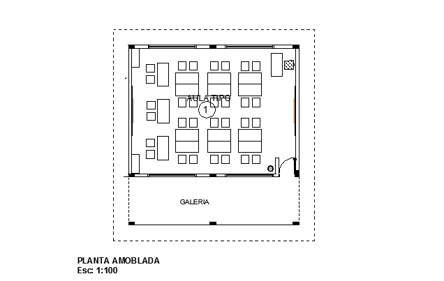 Top view layout plan of av room,here there is 2d elevation of a av room with furniture with text detailing
