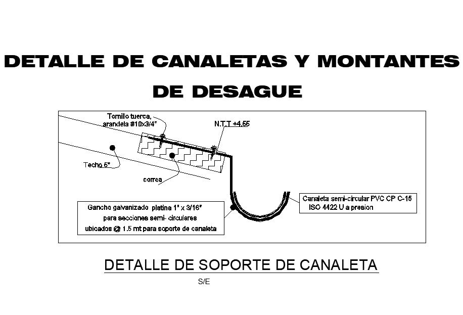 Gutter support detail dwg file, with dimension detail, naming detail, etc.