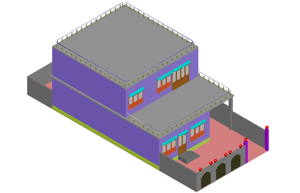 3D view of bungalows design dwg file in 3d view of bungalows design with designer entry way,
