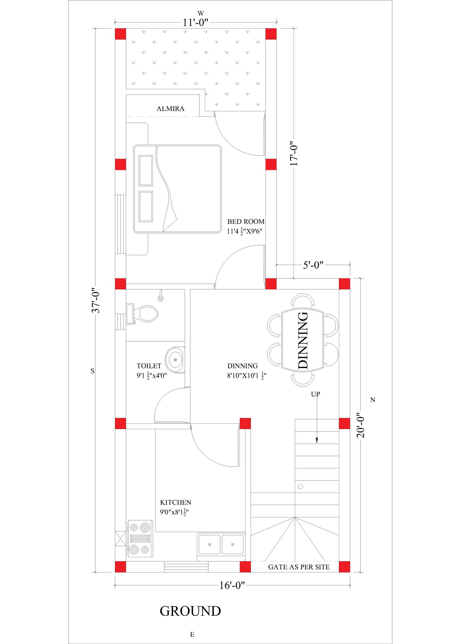 16 feet by 37 feet house design one bed room one kitchen one toilet one dining room 16 feet by 37 feet house design