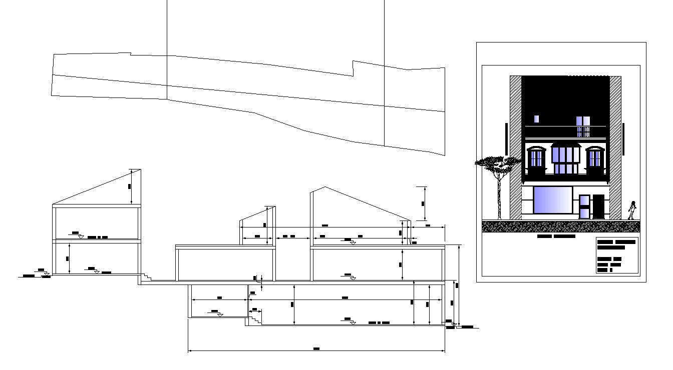 Draft housing in plot plan. The front plan with elevation in detail. Detailing includes dimension detail, door and window detail, etc.,