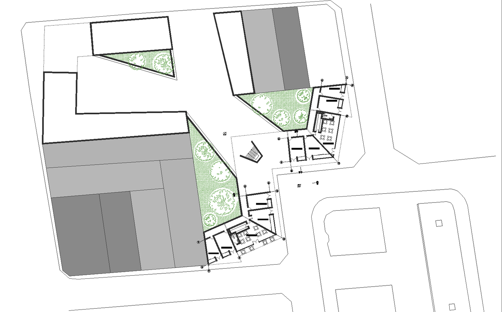 Building multi-family. Top view or bird eye view plan with dimension detail.