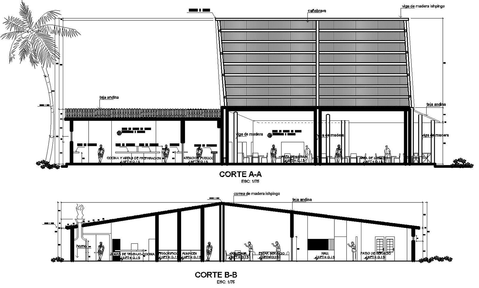 Ecological resort elevation detail dwg file,