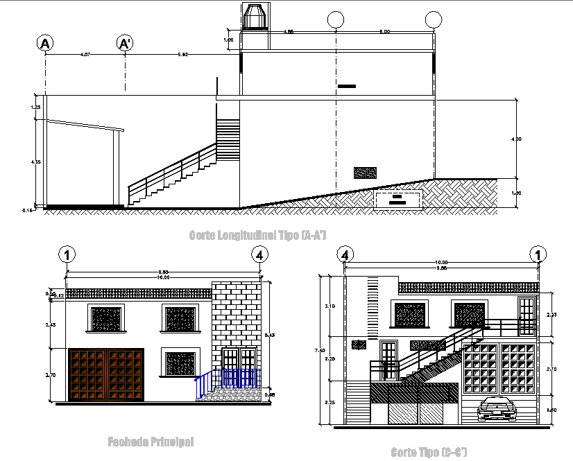 Section and elevation office plan detail dwg file, with center line plan detail, dimension detail, naming detail, car parking detail, etc.