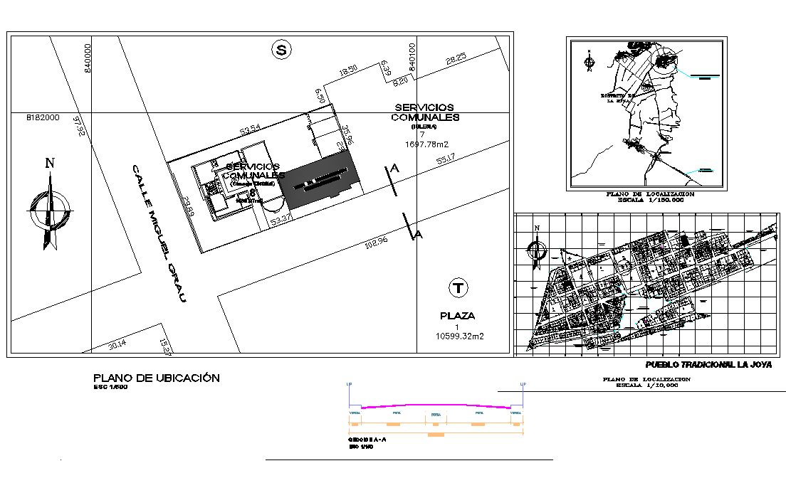 Site plan detail dwg file, with north direction detail, naming detail, scale 1:50 detail, section line detail, etc.