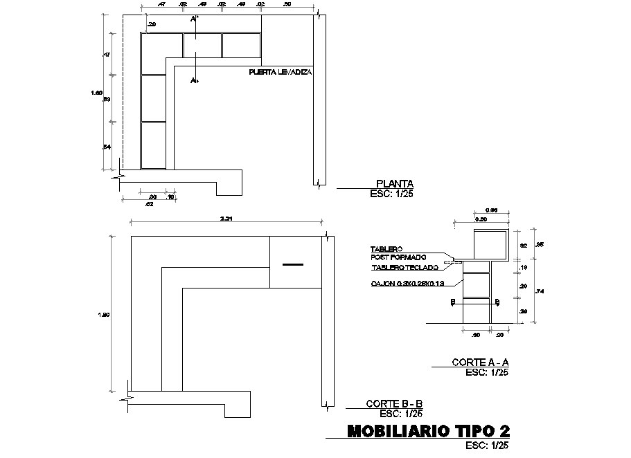 Type of Furniture detail dwg file, including plan and section detail, section A-A’ detail, section B-B’ detail, etc.
