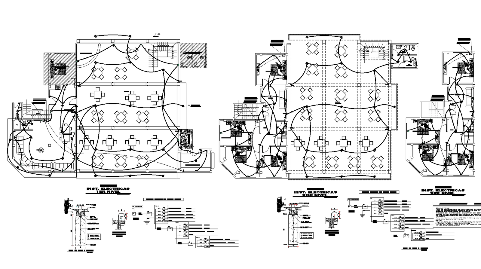 Electrical housing project plan detail. Electrical layout with detailing of ceiling lights, bracket lights, fan point, A.C point, switchboard, etc.,