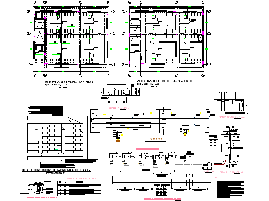 Beam plan and section detail dwg file, including centre line plan detail, dimension detail, naming detail, brick wall detail, etc.