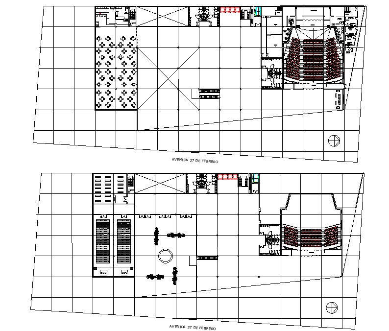 Office building auditorium conf room bar restaurant plan detail dwg file