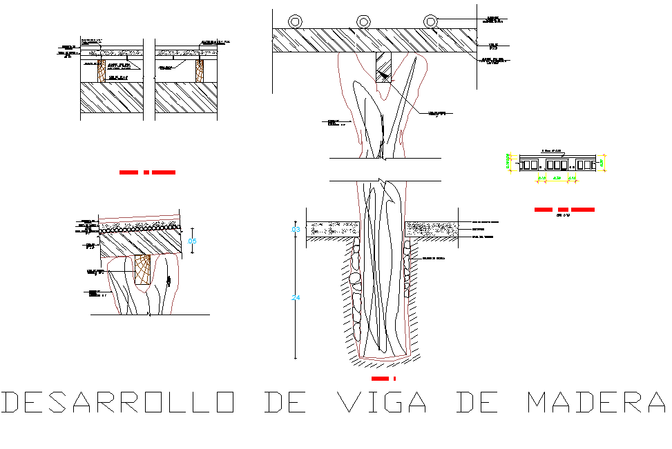 Wood beam development plan detail dwg file, including dimension detail, naming detail, etc.