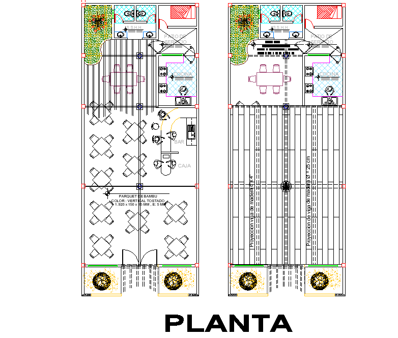 Planning home detail dwg file, with landscaping detail in tree and plant detail, toilet detail, furniture detail in table, chair, door and window detail, etc.
