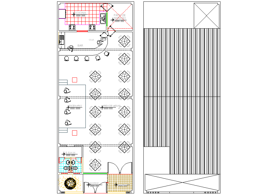 Terrace plan detail dwg file, including cut out detail, furniture detail in table, chair, door and window detail, toilet detail, etc.