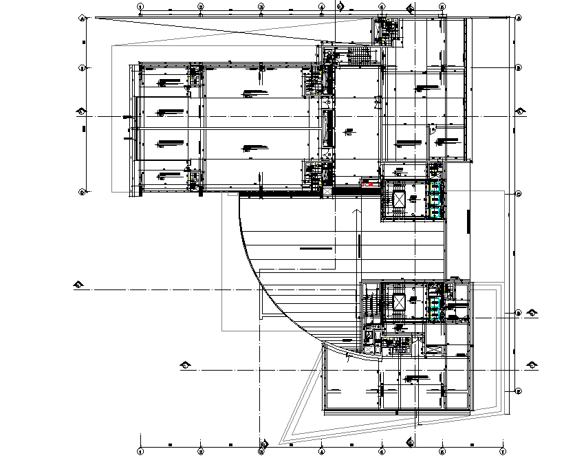 Business center plan detail dwg file, including section line detail, centre line plan detail, dimension detail, naming detail, etc.