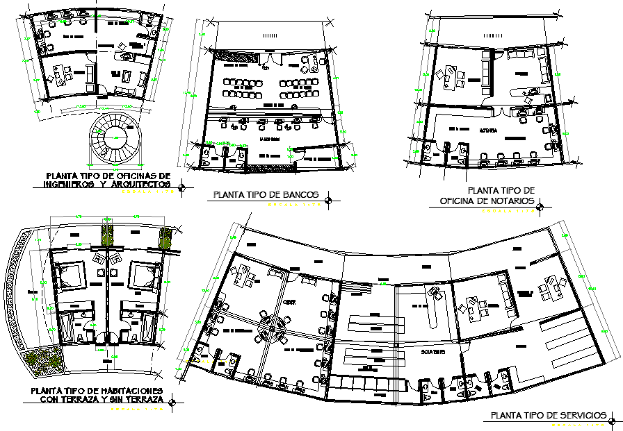 Architect planning building detail dwg file, including dimension detail, naming detail, spiral stair detail, etc.