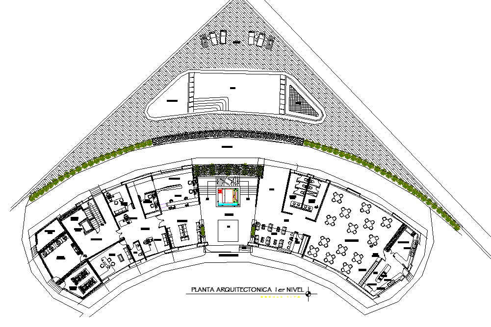 Ground floor plan detail dwg file, including car parking detail, landscaping detail in tree and plant detail, stair detail, etc.