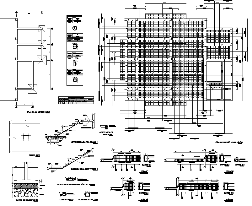 Beam plan and section detail dwg file, including stair section plan detail, section line detail, dimension detail, naming detail, etc.