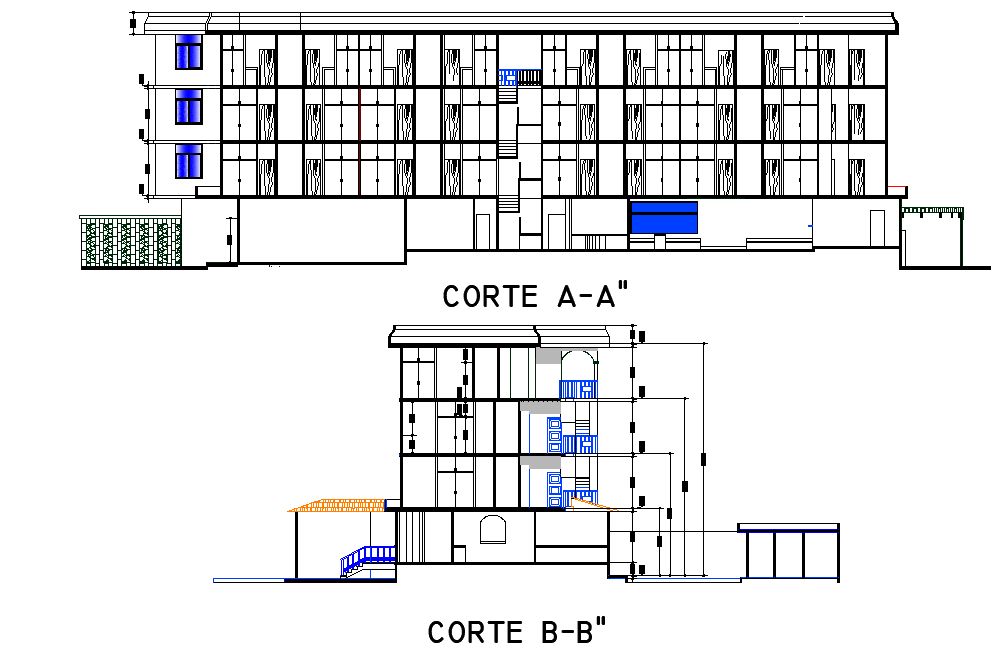 Section office plan detail dwg file, including section A-A’ detail, section B-B’ detail, dimension detail, naming detail, etc.