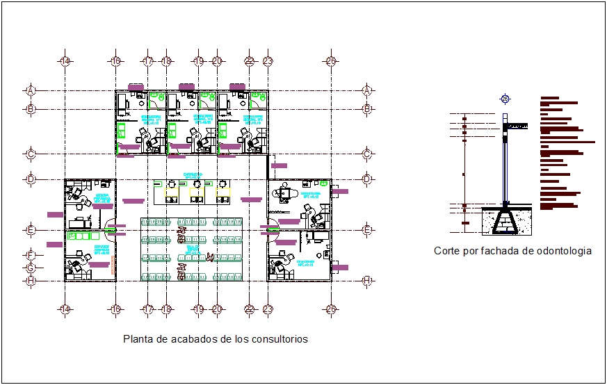 Clinic floor plan view with architectural view dwg file in plan with view of area view with distribution and wall view and sectional view with necessary detail view of clinic area and consultant area with