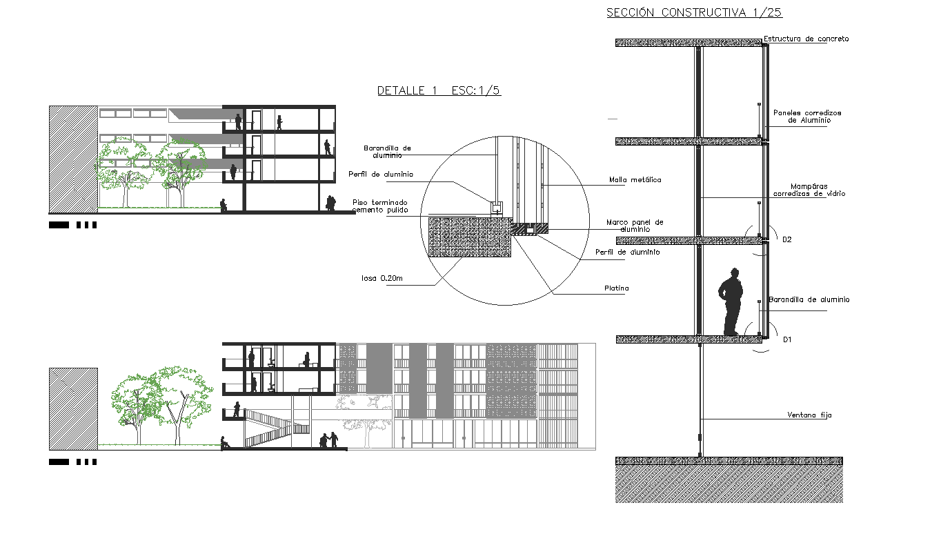 Sections of building multifamily plan detail dwg file.
