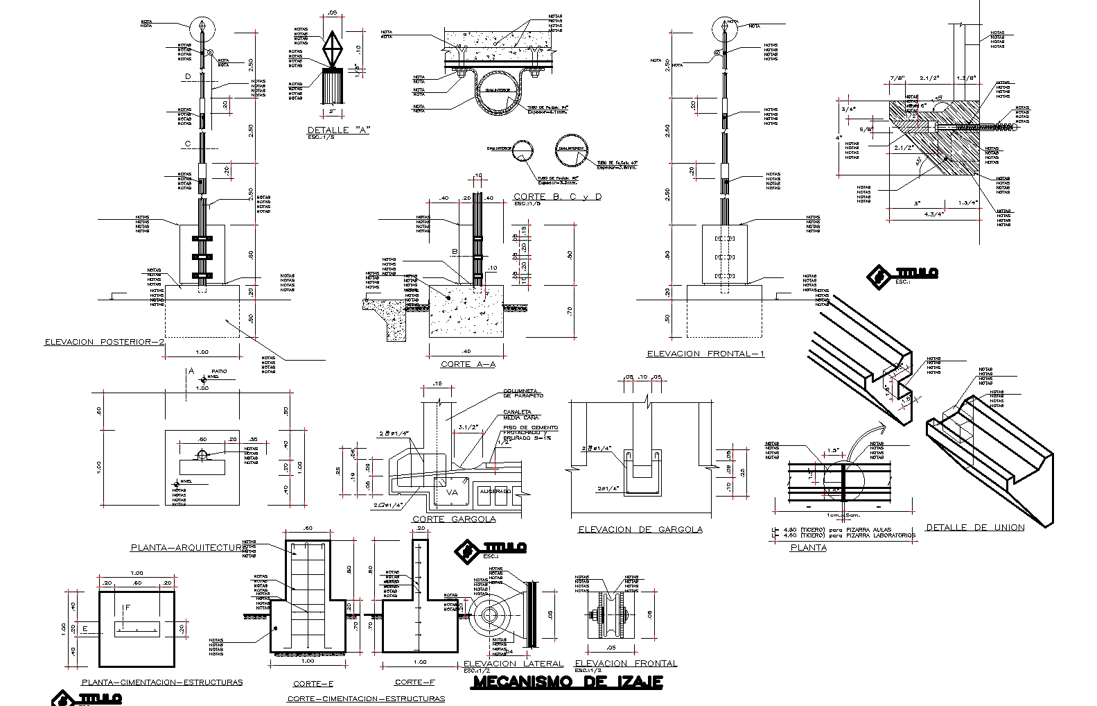 Anchoring installation of a flag pole and down spouts school plan. Sections and elevation in detail is shown in the plan with proper dimension details.