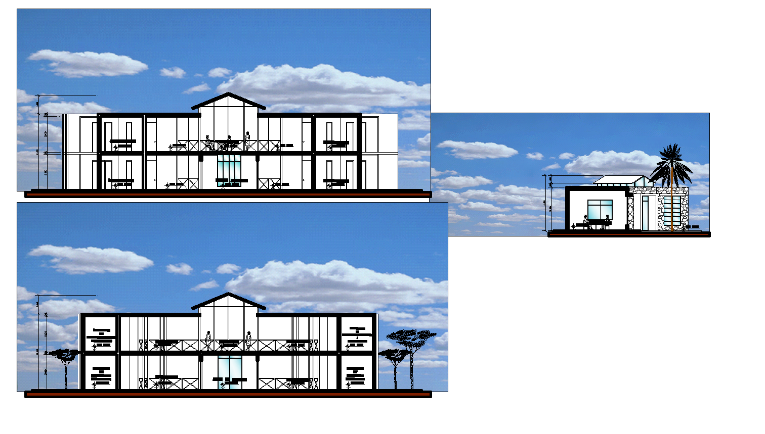 Elevation of city offices and cultural plan. The front elevation with door and window detailing, dimension detailing, etc.,