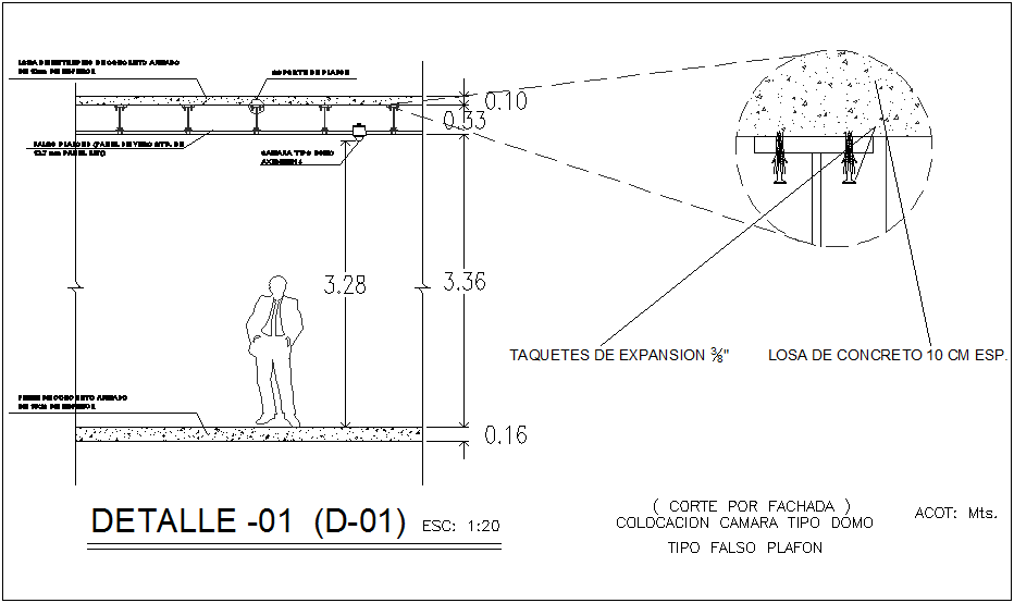 CCTV(Closed circuit tale vision) installation view in wall with construction view dwg file