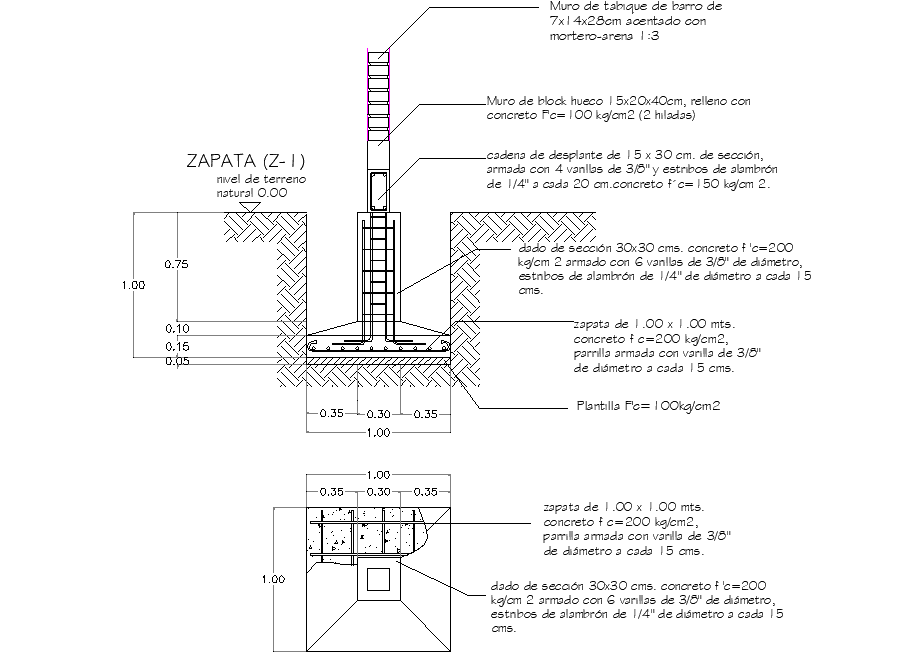 Foundation plan and section detail dwg file, with reinforcement detail, bolt nut detail, dimension detail, naming detail, etc.