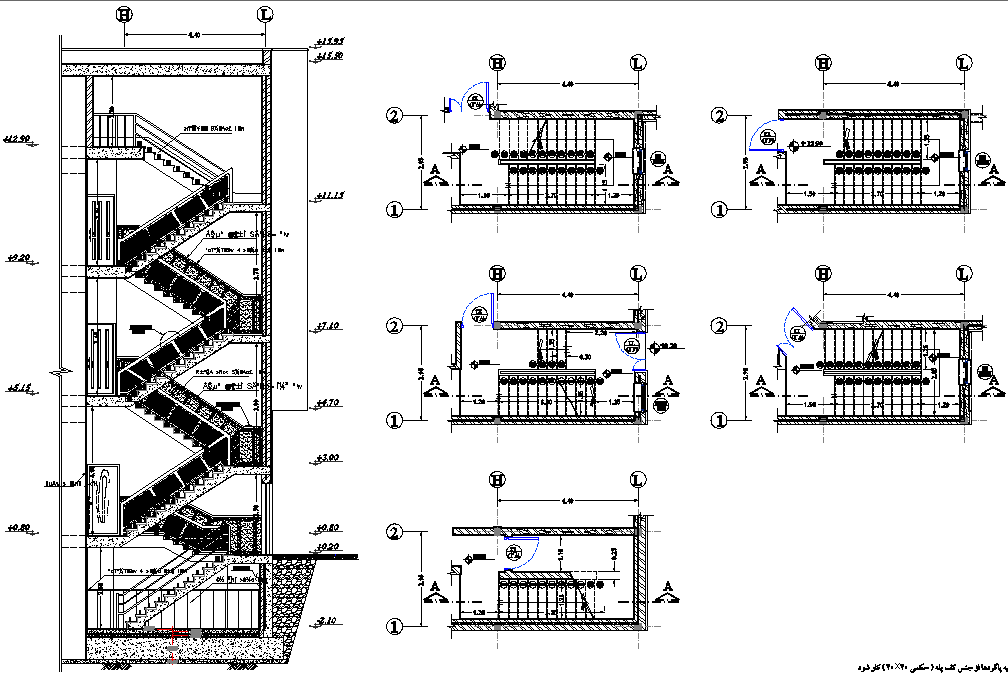 Plan and section stair plan detail dwg file