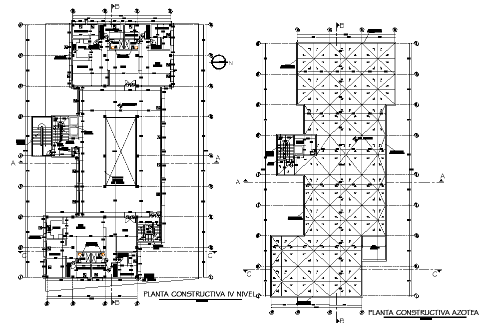 Level building construction plants detail dwg file, including centre lien plan detail, section line detail, dimension detail, naming detail, etc.
