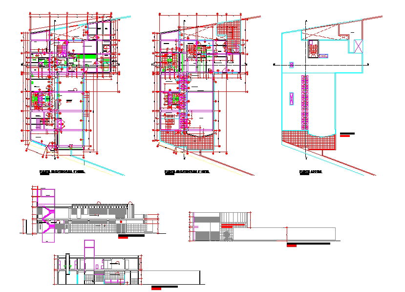 Clinic architectural DWG with floor plans sections and service layouts